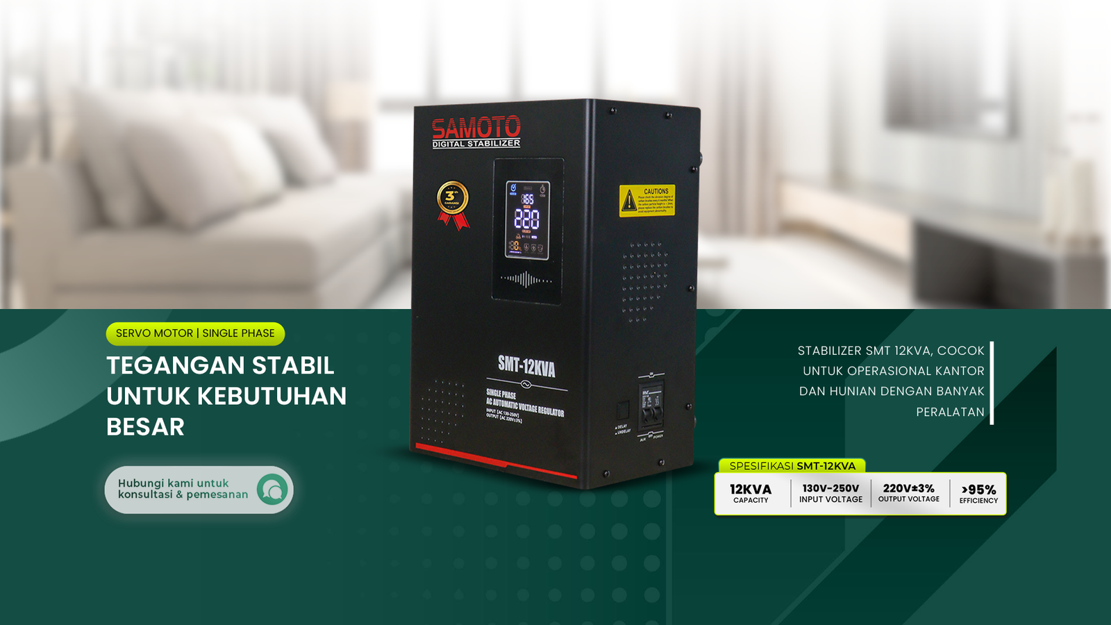 Stabilizer satu fase kami sangat cocok untuk menjaga stabilitas tegangan di aplikasi rumah tangga dan usaha kecil.