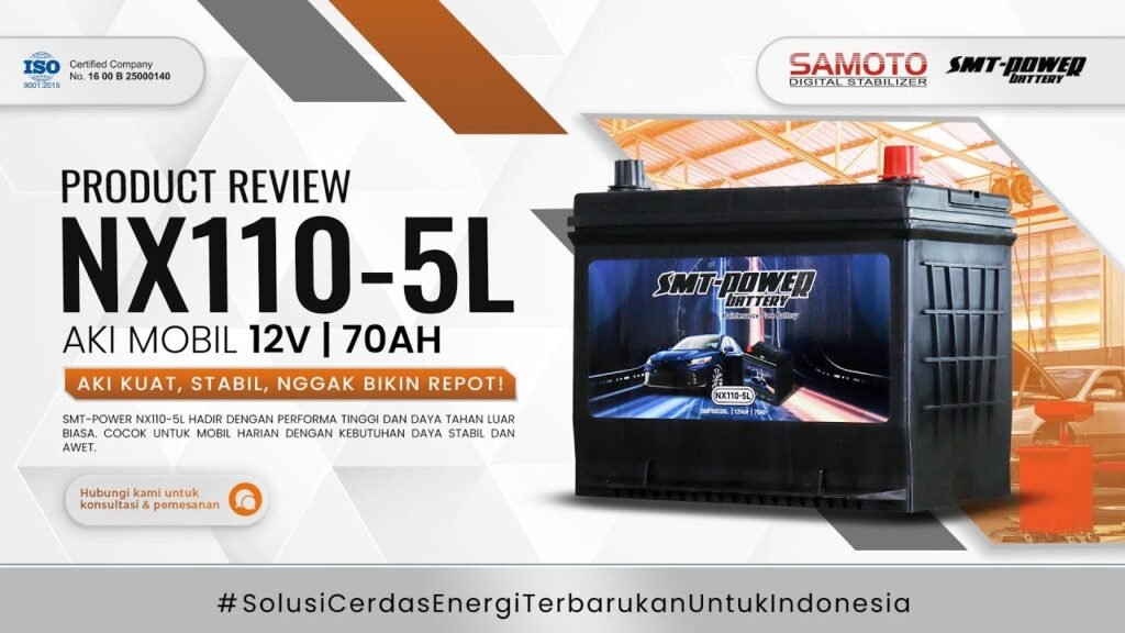 SMT POWER BATTERY NX110-5L adalah aki kering 12V 70AH dengan daya besar dan performa tangguh, cocok untuk Fortuner, Pajero Sport, Hilux, Triton, hingga MPV & SUV berfitur elektronik tinggi. Menggunakan teknologi Maintenance Free yang praktis tanpa isi ulang cairan. Start kuat, stabil di suhu ekstrem, dan tahan lama. Garansi resmi 6 bulan. Stok ready, siap kirim ke seluruh Indonesia! Untuk memahami lebih dalam cara kerja dan perawatan aki mobil, silakan baca artikel ACCU (Aki) Mobil: Fungsi, Jenis, Harga, dan Cara Merawatnya
