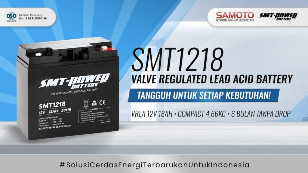 SMT1218 dari Samoto Mega Teknologi adalah baterai VRLA 12V 18AH, andalan untuk UPS besar, kendaraan listrik, dan sistem tenaga surya. Tahan lama, kapasitas tinggi, dan performa stabil bahkan di kondisi ekstrem. Self-discharge rendah, desain tangguh, garansi 1 tahun. Solusi daya andal untuk industri maupun penggunaan pribadi. Pelajari lebih lanjut tentang Baterai VRLA Kapasitas Sedang sebagai solusi optimal untuk kebutuhan energi menengah di sini.