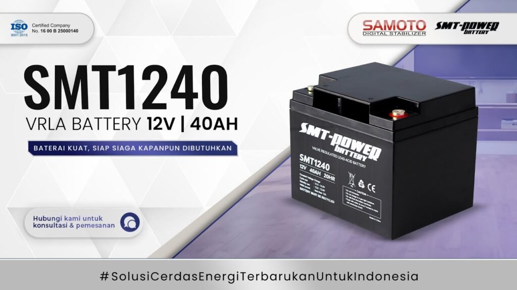 SMT1240 dari Samoto Mega Teknologi adalah baterai VRLA 12V 40AH, ideal untuk UPS besar, kendaraan listrik, dan sistem tenaga surya industri. Kapasitas besar, discharge tinggi, dan desain tangguh memastikan pasokan daya stabil dan andal. Cocok untuk kebutuhan profesional dan industri. Garansi resmi 1 tahun. Pelajari lebih lanjut tentang Baterai VRLA Kapasitas Sedang sebagai solusi optimal untuk kebutuhan energi menengah di sini.