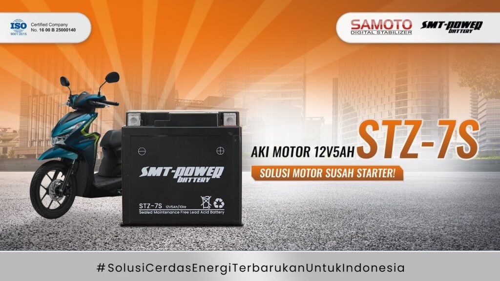 STZ-7S adalah aki kering 12V 5AH dari Samoto Mega Teknologi, menggunakan teknologi VRLA yang bebas perawatan dan siap pakai. Memberikan tenaga kuat untuk motor matic dan bebek seperti Beat, Mio, dan Revo. Stabil, tahan panas, awet, dengan performa start responsif dan keandalan tinggi untuk mobilitas harian Anda. Garansi 6 bulan. Pelajari cara mengganti aki dengan benar melalui artikel: Tutorial Lengkap Cara Ganti Aki Motor Tanpa Harus ke Bengkel.