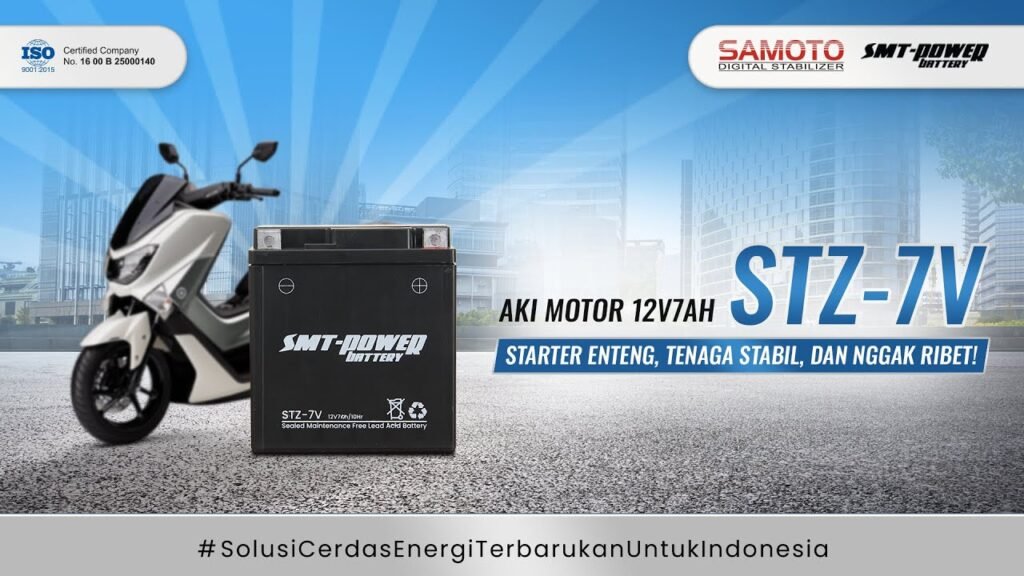 SMT POWER BATTERY STZ-7V adalah aki kering 12V 7AH dengan performa kuat untuk motor berdaya tinggi. Cocok untuk motor touring, sport, dan matic besar yang membutuhkan suplai listrik stabil. Teknologi VRLA membuatnya bebas perawatan, awet, dan tahan cuaca. Desain kompak memudahkan pemasangan. Garansi resmi 6 bulan & siap kirim seluruh Indonesia. Biar aki tetap awet dan motor selalu siap distarter, baca juga artikel kami: 15 Penyebab Motor Tidak Bisa Distarter, Tak Hanya Soal Aki.