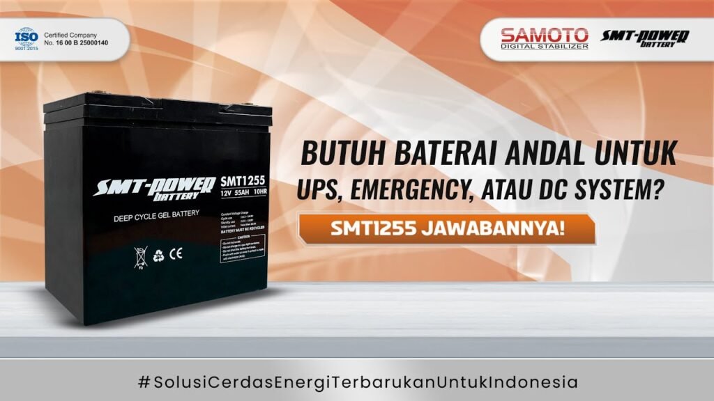 SMT-1255 12V 55AH Deep Cycle Gel dari Samoto Mega Teknologi adalah baterai VRLA andal untuk sistem tenaga surya, UPS, dan kendaraan listrik. Dengan daya tahan tinggi, performa stabil, self-discharge rendah, dan desain kokoh, baterai ini siap menunjang penggunaan jangka panjang. Garansi 1 tahun tersedia. Tanya harga & stok sekarang! Temukan semua yang perlu Anda ketahui tentang Baterai VRLA Deep Cycle Gel untuk kebutuhan energi tinggi di sini.